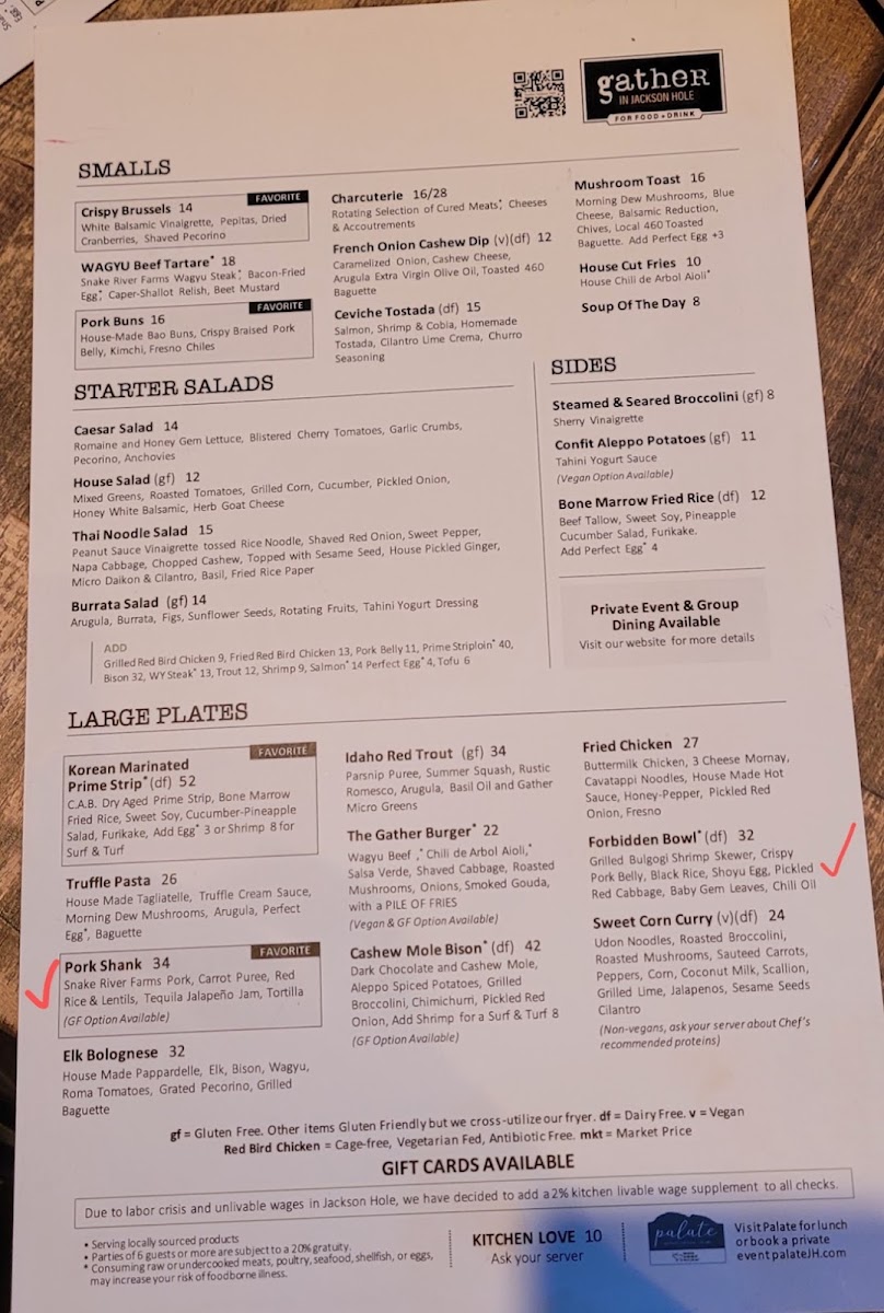 Snake River Farms Pork, Carrot Puree, Red Rice and Lentils, Tequila Jalapeño Jam, Pickled Peppers, Carrot Chips, Tortilla (Gluten Free Option Available)